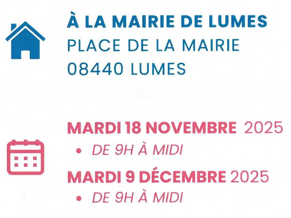 De nouvelles permanences - UNIQUEMENT SUR RENDEZ-VOUS - ont lieu en mairie les :